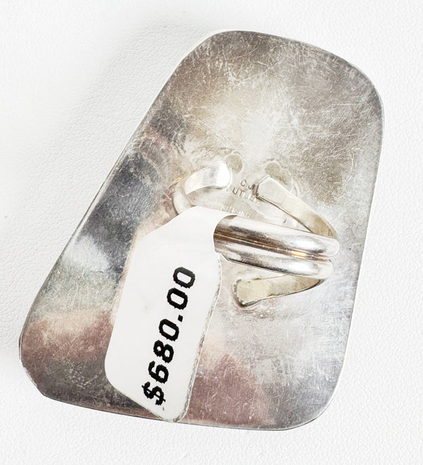AZURE HORIZON RING - KINGMAN TURQUOISE STATEMENT NATIVE MADE RING STAMPED BY CJ BUTLER (SIZE 8) (MW6)