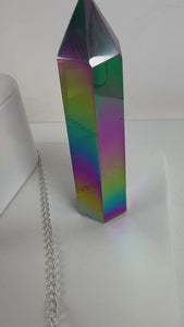 BOX 19 - RUTILE QUARTZ NECKLACE 22", RAINBOW TITANIUM POINTER, MOSAIC MULTISONES NACHO GOMEZ ADJUSTABLE RING