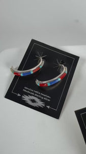 NATIVE HANDMADE JEANETTE CHAVEZ MULTISTONES INLAY HOOP EARRINGS